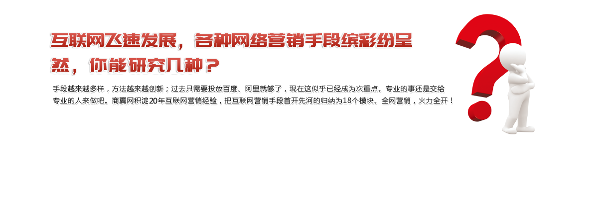 商翼網成立于2000年,擁有18年專業網站建設經驗,客戶遍及政府和各企事業單位.主要業務有:鄭州網站建設,河南網站建設,政府網站建設,企業網站建設,營銷型網站建設,電子商務網站建設,提供網站建設案例等服務。咨詢電話:0371-66355405